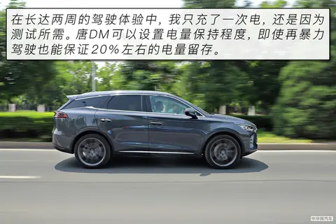 在操控稳定性方面,无论是在测试场中还是道路试驾环节,唐DM都表现得十分出色,文能提笔安天下,武能上马定乾坤是唐DM给我最深的印象,既能带给你爆爽的驾驶激情,同时也能在上下班的路上给你舒适流畅的驾驶体验。当然唐DM在能量利用方面也是很拿手的,在一定条件下,你甚至可以将它当作是不用充电的混动车,因为在高速时发动机的充电速度要比充电桩还快。