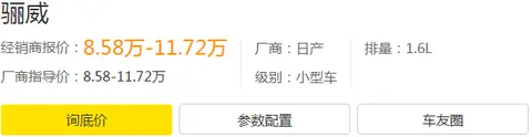 骊威厂商指导价:8.58万元-11.72万元,综合优惠价:8.58万元-11.72万元。