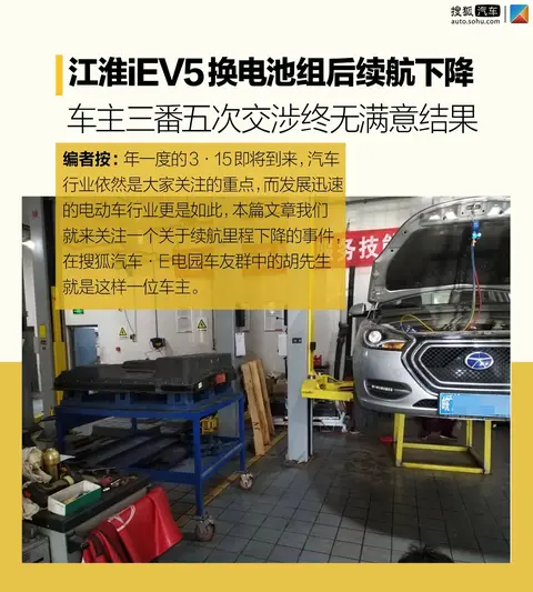 一年一度的3·15即将到来,汽车行业依然是大家关注的重点,而发展迅速的电动车行业更是如此,本篇文章我们就来关注一个关于续航里程下降的事件。如果您是一位电动车车主,却经常听到同款车型频发自燃事件,您怕不怕?而且在厂家因此召回更换完电池组后,续航里程却不升反降,是不是很糟心?在搜狐汽车·E电园车友群中的胡先生就是这样一位车主,在遭遇了多重“打击”后,至今没有令人满意的结果。