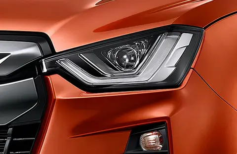 皮卡设计的第一要素是什么?肯定要够气场,高大威猛是外观的基础设计,相比老款车型,2021款D-MAX的大灯样式有所改变,增加了开眼角的设计元素,内部结构也变得简洁不少,转向灯则被单独布局在了雾灯上方。
