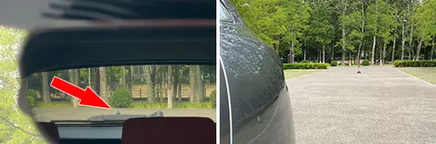 外后视镜视野范围测试时,首先让测试人员分别站在左右后视镜垂直10m处,随即开始向左右两侧移动,直至出现在两侧后视镜最外侧边缘为止,测出其横向距离。随后通过公式计算,便可以得出后视镜视野范围的夹角角度。角度越大则后视镜视野盲区范围越小,反之则后视镜视野盲区越大。