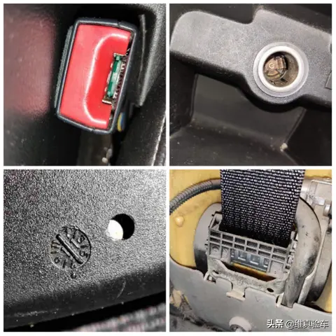 安全带生产日期正常,安全带底部、安全带卡扣和点烟器内都未发现进水的痕迹。