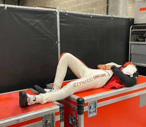 这是比利时站唯一刷够圈数的车手,“今天率先冲线的还是奔驰!”也有车迷坏心眼说:“是刷着法拉利红的奔驰车。”“最后一圈发现油没带够……”