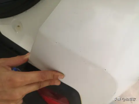 转到车辆的后部,看到后杠的喷漆都没处理好,都“流泪”了!估计是是修车的时候价钱没给够,不然喷成这样就交车,按照4S的标准来说,肯定是要返工的,而返工就意味着成本,意味着前面的白干!但是如果不是高要求,或者成本比较低的修复,就是这样了,把漆喷上去就收工了,管你有没有瑕疵,反正是白色的,没给你弄成五颜六色就OK了。