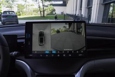宋Pro DM-i内饰造型也同步延续新款宋Pro燃油版的设计风格,并推出了专属的麒麟棕+苍穹灰配色,并且全系均可选装釉玉蓝双色内饰。其配备悬浮式数字仪表盘和中控屏,根据车型不同配备10.1英寸、12.8英寸和15.6英寸不同尺寸的自适应旋转中控屏,入门车型内置DiLink 3.0系统,其他车型则内置DiLink 4.0系统。