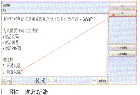 数据总线诊断接口J533作为所有控制单元信息传递、处理的控制协调部件,是不是数据总线诊断接口J533中针对新更换的驾驶员前部辅助系统摄像机R242有某些相关信息传递功能未进行开通导致的呢?思考至此,笔者使用专用诊断仪VAS6150B中的特殊功能列表下的“功能开通”菜单,“恢复功能”19数据总线诊断接口J533,如图6所示;完成操作后,再次清除故障码,试验故障排除。
