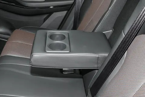 编者找来一位身高178cm的乘客,其坐进后排腿部能有着两拳的空间,翘起二郎腿也能活动自如,头部能够留出一拳左右的空间,再加上其配备了全景式天窗,丝毫不会感受到压抑。而且据乘客反馈,车子的座椅填充物较为柔软,腿部支撑力度也很好,整体感觉较为舒适。另外后排中间部分还配备了杯架和扶手配置,很贴心的设计。
