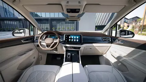 内饰是新款威然升级的重点,新车采用了全新的中控台布局设计,方向盘和换挡杆为大众家族的最新造型,中控屏幕为悬浮式设计,中控台下方还增加了储物格。
