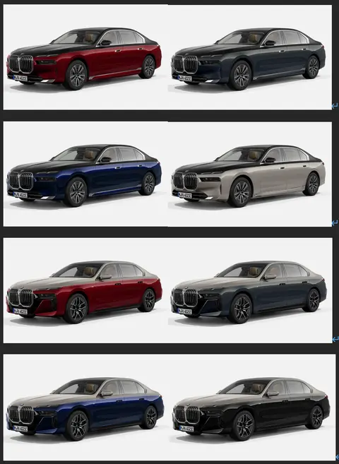 车漆部分,目前可以进行配置的一共有14种单色,以及组合的双拼颜色,或许是揽胜行政版、迈巴赫S级乃至幻影等车型双拼色的影响,这一次的7系/i7也提供了,算是好事一桩,其中单色漆面中有标配的高山白非金属漆,也有金属漆面、M风格漆面,下面我将所有渲染图分享大家,请告诉我你们最喜欢的。