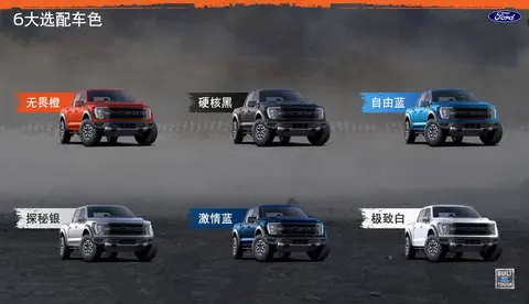 从官方信息可以看出,新车三围达到5930/2199/1992mm,轴距为2694mm,均比老款有着小幅度的提升,最小离地间隙272mm,涉水深度810mm,接近角29度,离去角22度,同时还升级了铝制发动机护板,覆盖更大的面积,依旧有着出色的通过性能。高中还提供了无畏橙,硬核黑,自由蓝,探秘银,激情蓝和极致白等六种车身配色,配合F150猛禽处的黑色猛禽特殊塑料装饰。车尾部分C字形的红色灯包裹的贯穿式黑色装饰条等细节,在粗犷运动的基础上,科技感也较老款车型有着较大幅度的提升。