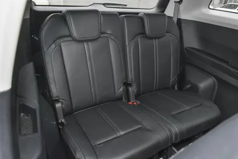 车内座椅采用了仿皮面料包裹,坐上去软硬适中,主驾驶单独配有座椅高低调节,第二排座椅配有前后调节和靠背角度调节,第三排座椅配有比例放倒功能。