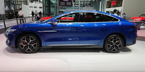 比亚迪汉DM-i则是插电式混合动力车型,该车搭载了1.5升排量的涡轮增压发动机,其发动机最大马力为139匹,最大扭矩为231牛·米。前置单电机的布局,采用插电式混合动力218匹马力的永磁同步电机,电动机的最大扭矩为325牛·米。同样采用了磷酸铁锂电池刀片电池技术,该电池容量为37.5千瓦时,支持快充0.47小时,开启纯电动模式时可以行驶242公里。与之匹配的则是E-CVT电子无级变速箱,该变速箱在换挡过程中表现的较为平顺,没有太过明显的顿挫感,使得该车百公里加速同样为7.9秒,最高时速为185公里每小时。