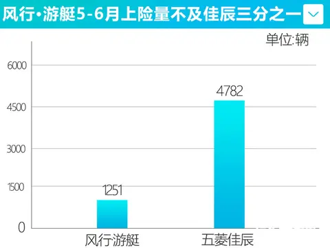 上市发布会中,东风柳州汽车有限公司乘用车销售公司总经理助理——钟伟表示,风行·游艇累计预售量为25785辆。但据新车上险量数据显示,其5-6月累计上险量仅为1251辆。同为4月28日预售的五菱佳辰5-6月总上险量为4782辆,是风行游艇的3倍多。