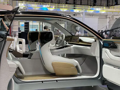 内饰方面,星途AtlantiX概念车采用了极简的设计风格,包括中控台、门板、座椅底部等多处区域加入了木纹饰板包裹,并融入多条灯带,营造出居家的氛围。除此之外,星途AtlantiX概念车还配备了一体式大屏、双辐式方向盘等。