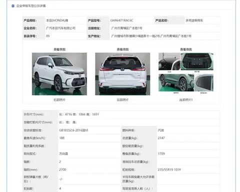 日前,广汽本田SUV皓影(图片|配置|询价)的全新换代车型出现在最新一批工信部申报目录中。本次申报车型为全新皓影汽油版,基于Honda Architecture全新平台打造,并针对外观进行了重新设计。申报信息中的全新皓影,包含了1.5T五座、1.5T七座、1.5T五座四驱共计3款。
