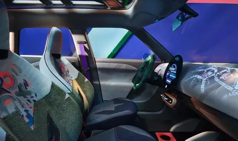 再看内饰图,它的设计和品牌目前倡导的环保理念相吻合,车内几乎看不到什么镀铬元素、皮革材质,代替它们的主要是针织材料。我们没有看到仪表盘的存在,不过圆形中控屏得以保留,预计其行车信息将会反映在中控屏上。