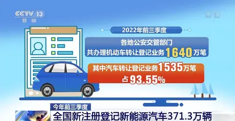 公安部日前发布统计数据,今年前三季度,全国新注册登记新能源汽车371.3万辆,同比增长98.48%。
