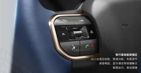 睿蓝9在中央扶手区域配备了驻车档、EPB电子驻车制动、驾驶模式等实体按键,同时配有智行高效能按键区,具有ACC自适应巡航、限速功能、车距调节、语音唤起、蓝牙通话等按键。