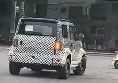 外观方面,结合本次曝光的路试谍照和此前曝光的预告图来看,新车外观轮廓较为方正,采用双门设计,轮拱向外突出有着不错的越野风格,将采用双色车身设计来提升时尚感。新车尾灯采用圆矩形设计,转向灯和倒车灯集成在尾灯内部。