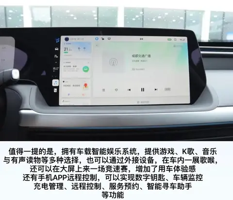 在车机部分,配备了10.25英寸的全液晶仪表盘和14.96英寸的中控屏幕,内置Xmart OS车载智能系统,拥有开放式应用市场,可以随时进行应用升级,也可以下载第三方APP,比如在线音乐软件、在线导航软件、在线视频软件等,也可以把支付宝小程序移植到车端,增加了体验感,还有车联网、OTA升级等功能。