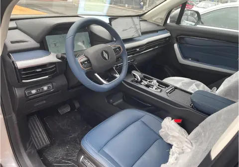内饰方面新车采用简洁的T字形布局,贯穿的中控台和前挡风玻璃高度贴合,给人一种开阔的视觉感受,整体显得比较年轻和放松。方向盘采用三辐平底的样式,多功能按键布局合理,功能也一目了然。该车的内饰采用蓝黑相间的配色,并且这一配色方案还沿用到了方向盘上,看上去比较年轻。双12.3英寸的中控屏也全液晶仪表错落有致,前方还配有一块8英寸的抬头显示器,呈现出了较强的科技气息。