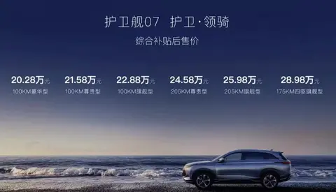 12月9日下午,比亚迪海洋网旗下全新中型SUV车型护卫舰07正式上市,新车共推出三种续航里程版本共6款车型,售价区间为20.28-28.98万元,起售价格略低于此前官网预售价的21万元起。