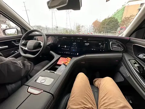 此次曝光的这组照片为这款新车的中控台的正面照片,把它的一些车身的细节较为完整的展现了出来,而且清晰度比之前的高的多,之前的谍照多为侧面角度拍摄的,一些细节并不能较为完美的呈现。本以为,星途瑶光的内饰足够惊艳了,没想到星途还是把更加惊艳的内饰设计在了旗舰车型上,星途揽月的旗舰地位毋庸置疑。新款揽月的中控台采用的是三块大连屏,屏幕周围采用了钢琴烤漆的装饰,看上去屏幕就是一个整体。新车的屏幕的风格比较垂直,中间的上方采用了隐藏效果的空调出风口,两端的空调出风口采用了圆角的三角形设计。新车的前侧的地台上采用了非常简约的设计,但是很有豪华感,采用了隐藏式的储物格,后侧采用了对开式的扶手箱。