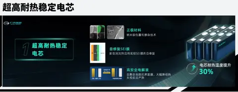 在优势方面,弹匣电池具备四大特点。首先就是拥有超高耐热电芯。弹匣电池通过正极材料的纳米级包覆及掺杂技术,加上新型添加剂的应用,可以实现SEI膜的自我修复,同时弹匣电池使用的还是高安全性电解液、自聚合高阻抗界面膜,可以大幅降低热失控反应热,这一系列关键技术的应用,使得电芯的耐热温度提升了30%。