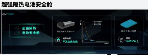 第二点则是拥有超强隔热电池仓。弹匣电池采用超强隔热电池安全仓,这个电池安全仓就相当于一个弹匣,把电芯与电芯之间隔开,其使用的网格纳米孔隔热材料,可以使相邻电芯不发生热失控,另外电池包所采用的耐高温壳体可承受1400℃的高温。