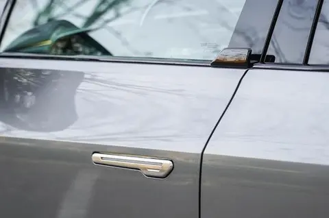 值得注意的是,为了贴合LYRIQ锐歌的新能源车身份,该车也采用了隐藏式门把手设计,但不同于常规的外拉开启方式,想要打开车门的话,需先按压门把手较宽的一侧,车门才会自动弹开一条缝隙,此时再拉B柱窗沿处的黑色把手才可开启车门。这个设计看似新颖,但用起来不太实用便利,最让人头疼的是,每次按压门把手以后,车门不是每次都会完全打开,有时需要多按两次才能解决,设计不合理。