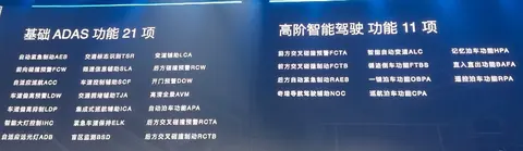 内饰配备了24.6英寸曲面双联屏,双辐平底方向盘采用触控按键。一体贯穿式出风口拉伸视觉宽度,区隔开双色内饰上下分层。空调旋钮和环状镀铬装饰十分精致,并且取消了换挡机构(改为怀挡),提供双层储物空间。配色提供霁雨白、星夜黑、雾砂红可选,智能化搭载高通8155智舱芯片和地平线J3辅助驾驶芯片,提供基础ADAS配置21项,高阶智能驾驶功能11项。