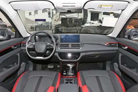 进入车内,黑灰的整体色调搭配亮红色装饰线条,整车内饰显得格外张扬,搭配平底式方向盘,时尚运动气息扑面而来,只是方向盘采用塑料材质,无论是手感还是档次都降低不少,后续可根据自己需要加装方向盘套。中控区域一块10.25寸的悬浮式中控屏格外显眼,搭配一块7寸全液晶仪表盘,科技感的体现也非常到位,游艇式档把也是走在了时尚的前列,非常符合当下年轻化的审美观念,而且操控感相当舒适。
