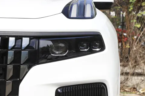 外观造型:领克09 EM-P基本延续了领克家族式的设计风格,前脸配备造型独特的进气格栅,让车头的运动感进一步增强;同时前脸两侧则采用了分体式大灯,其中上方为标志性的纵置LED日间行车灯,下方则采用了像素模块的远近光大灯,进一步增强了车头的时尚感。
