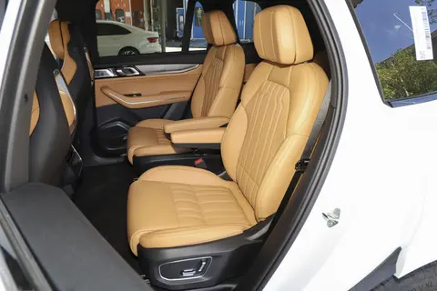 内部配置:领克09 EM-P配备平底三辐式多功能方向盘、12英寸中控液晶屏、12英寸中控屏、6英寸中控下屏以及贯穿式出风口,营造出不错的科技氛围;除此之外,车内采用全新绗缝设计的高级NAPPA真皮座椅,并且拥有座椅加热/通风/按摩,进一步提升车辆内部的豪华感。