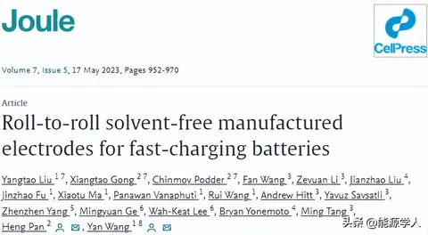 原文:Roll-to-roll solvent-free manufactured electrodes for fast-charging batteries.