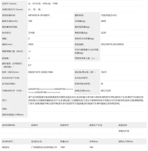 日前,笔者在工信部查询到了广汽传祺ES9家族的申报信息,新车应该是传祺GS8的插混版本,提供有普通版以及旅行者版可选。