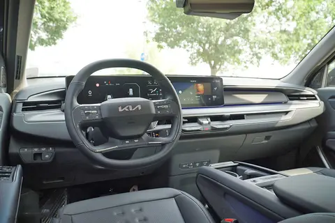 但即使如此,车内还是有足够的空间。另外,这也是起亚有别于嘉华的定位,因为嘉华已经是目前起亚最大的家用MPV了,EV9如果在空间上比嘉华更大,那定位上会有冲突。起亚的目的不单单是为了营造大空间,而是给用户纯电动汽车的移动体验。
