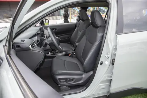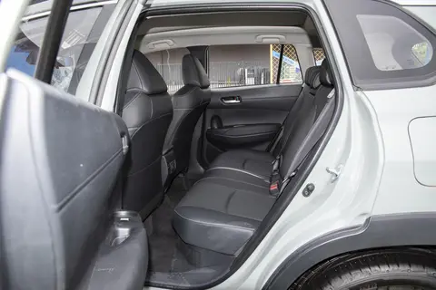 空间上,虽说将其定位为紧凑型SUV,但乘坐感还算是较为舒适,172cm的笔者亲测,落座于卡罗拉锐放前排时,头顶空间还有1拳距离,坐姿保持不变的情况下,落座于后排时,头顶空间约有4指,腿部空间还算较为宽裕,不过皮织的座椅,乘坐起来确实不如皮质座椅柔软,但通风性能还不错。