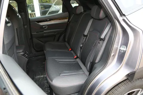 车身侧面,整体比例匀称,为传统的SUV设计。车身没有过多的线条进行勾勒,采用了隐藏式的门把手和内凹的翼子板,突出其运动感。大尺寸的轮毂为18英寸。尾部方面,尾灯进行了熏黑,采用了回旋镖式的造型,上方扰流板配高位刹车灯,下方则使用了巨大的黑色饰板进行填充,提高了离地间隙。