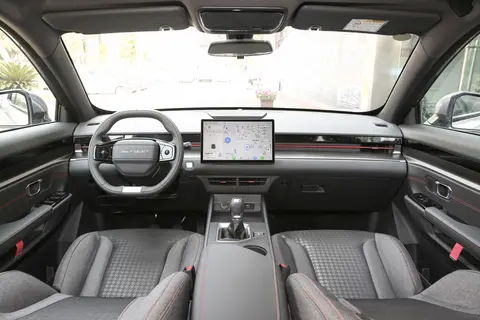 内饰部分,整个风格就偏于简约科技了,中控台为传统的T字造型,在用料方面为硬塑和翻毛皮的结合,车内配备有贯穿式的氛围灯,此外搭载的多媒体显示,并支持OTA升级、车联网等功能。方向盘为两幅式的多功能方向盘,在把握上手感饱满,并赋以缝线的点缀,整个中控台格外的简洁。