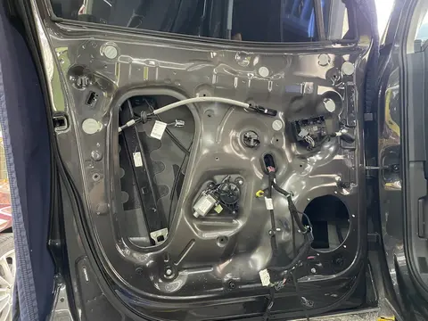 原车门板内部空洞结构较多,且未作有效隔音处理,风噪很容易通过门板传入到车厢内部,技师使用金鲨JS300对门板做止振处理,让门板形成一个密封箱体,门板内饰则使用高弹棉做吸音处理,有效阻止了风噪的传入。