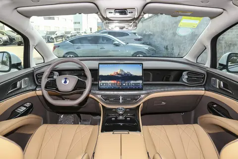 传祺E9的内饰则是在M8的基础上进行了进一步的提升,采用了大面积的皮质包覆,并且采用了三联屏设计,让副驾驶位也能享受到更多娱乐功能。后排同样是配备两张独立的座椅,同样配备通风加热按摩功能,虽然尺寸上小了一圈,但舒适和宽敞的感觉基本是一样的。