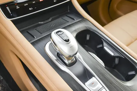 坐进前排,横贯在仪表上的三联屏让人印象深刻。中控和仪表台融合了各种不同的饰面。包括高档的真皮,亮色的饰面,拉丝面板和镀铬包边等等。手往车型摸一下,还有麂皮软包。整个前排的营造出不错的豪华感。