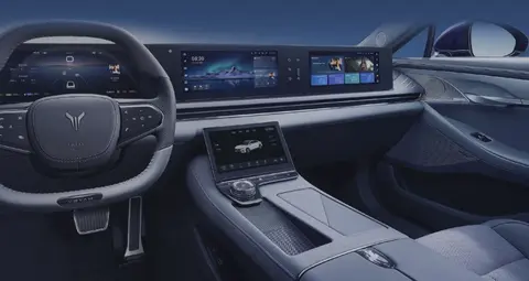 坐进车内,首先迎接你的便是将全液晶仪表、中控屏、副驾屏集合在一起的大尺寸联屏。三块屏幕整体的显示效果细腻,在芯片方面,岚图追光PHEV采用了高通骁龙8155处理器。在中控屏的下方还有一块9英寸的控制屏,集成空调控制、车辆设置等多项功能,进一步提升了座舱内部的科技感。