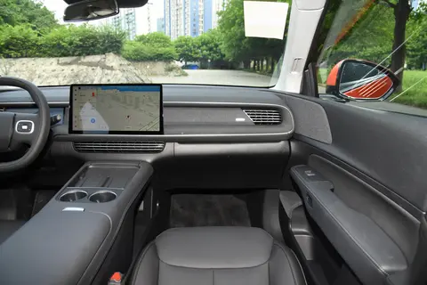 小鹏G6采用了时下较为流行的极简设计风格,车内有两块屏幕,悬浮式的中控屏为 14.96英寸,占据了C位,并且座舱内的大多数按键都整合进了屏幕,看上去简洁、干净。10.2英寸的中控屏液晶仪表采用内嵌式的设计,整体画面流畅度不错,并且画面质感细腻。它内置了Xmart OS 4.0车载智能系统,全场景语音交互系统能协助乘客完成车辆座舱内绝大部分的功能操作和设置,一句“你好,小P”,就可以轻松完成导航、空调、娱乐等设置。