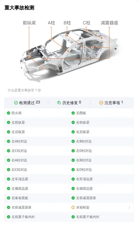 进行泡水检测时,9项都通过了,没有发现泡水的问题。这对于二手车来说,泡水检测无异常是非常重要的一项指标。