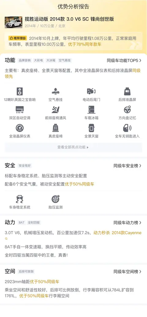 下面让我们看下文中车辆在安全、动力、空间部分相比同级车表现如何。