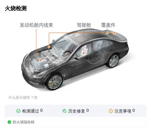 泡水检测方面,车辆的23项检测都通过,未发现异常。