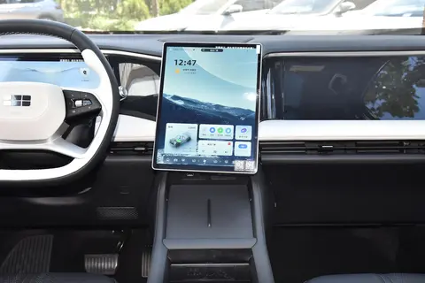 车内采用黑白双拼的配色,彰显典雅时尚。中控台简洁线条勾勒,10.25英寸全液晶仪表盘和16.2英寸的副驾驶屏形成衔接,增加了环绕感。13.2英寸中控屏幕采用悬浮式纵置设计,内置高通骁龙8155芯片,提供便捷的信息显示。256色氛围灯打造不同驾驶氛围。