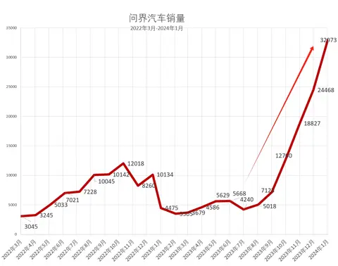 而我们仔细看看问界从2022年3月份上市的数据,就可以看出来,在2023年上半年低谷之后,以新问界M7(图片|配置|询价)推出为转折点,问界再次雄起,屡创纪录了。